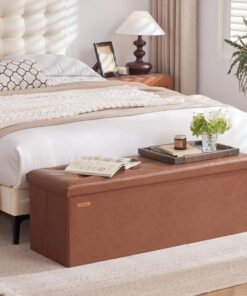 Material: The overall frame is constructed of high-quality MDF, which ensures a high load bearing capacity without easy deformation, compliant with US EPA TSCA TITLE VI standards. Besides, the soft fabric covering and thick padded seat provide a great sitting experience. Roomy interior storage space can meet the needs of storing clothes, blankets, shoes and other daily necessities.