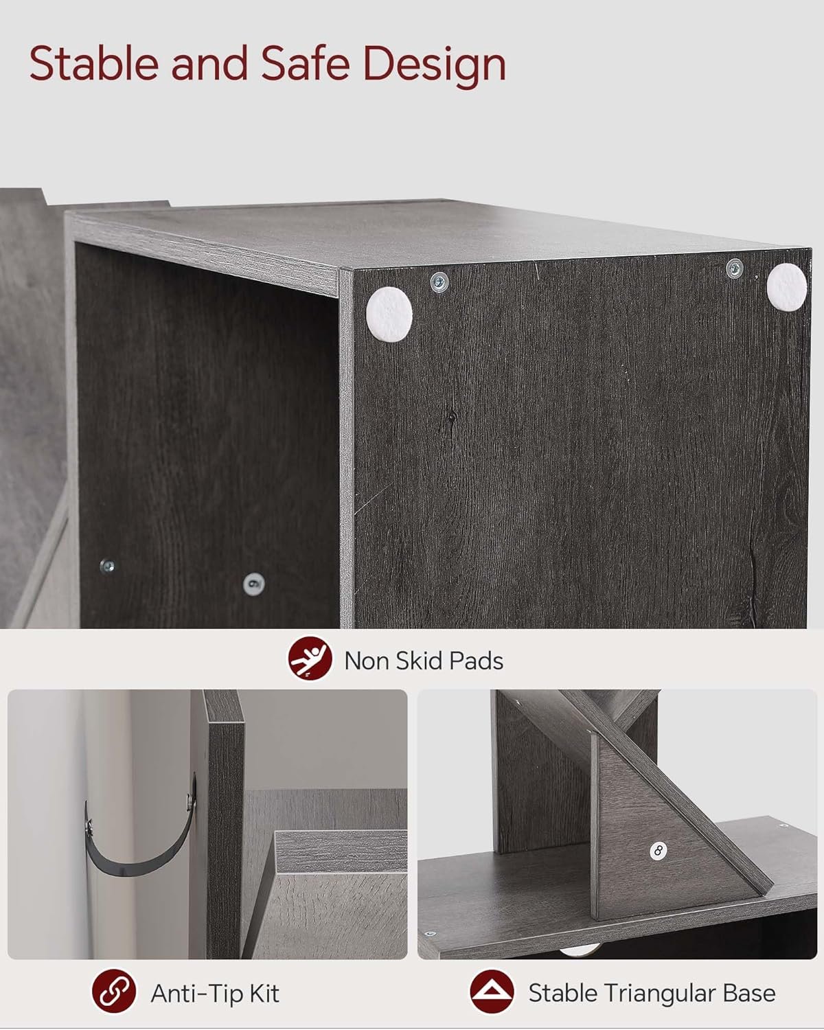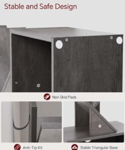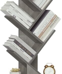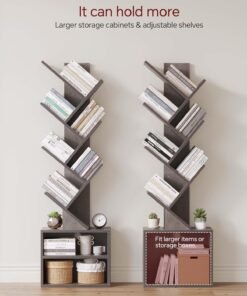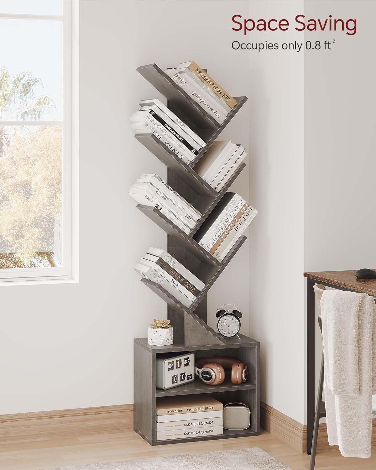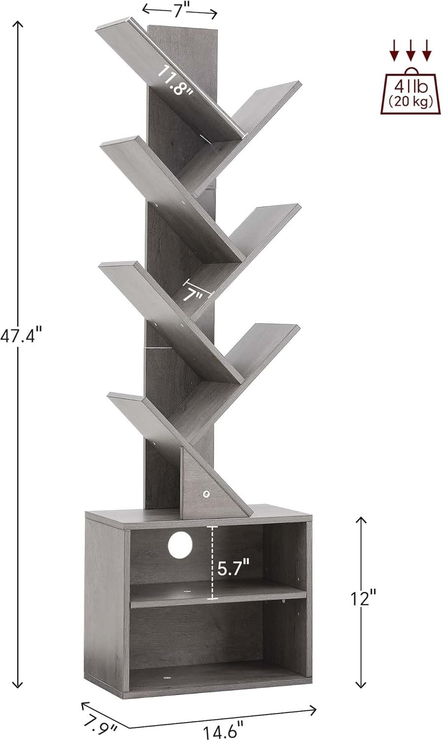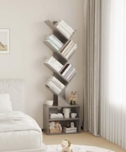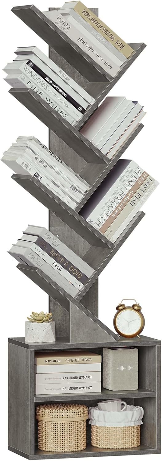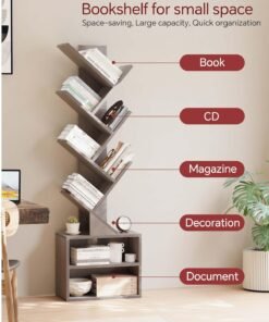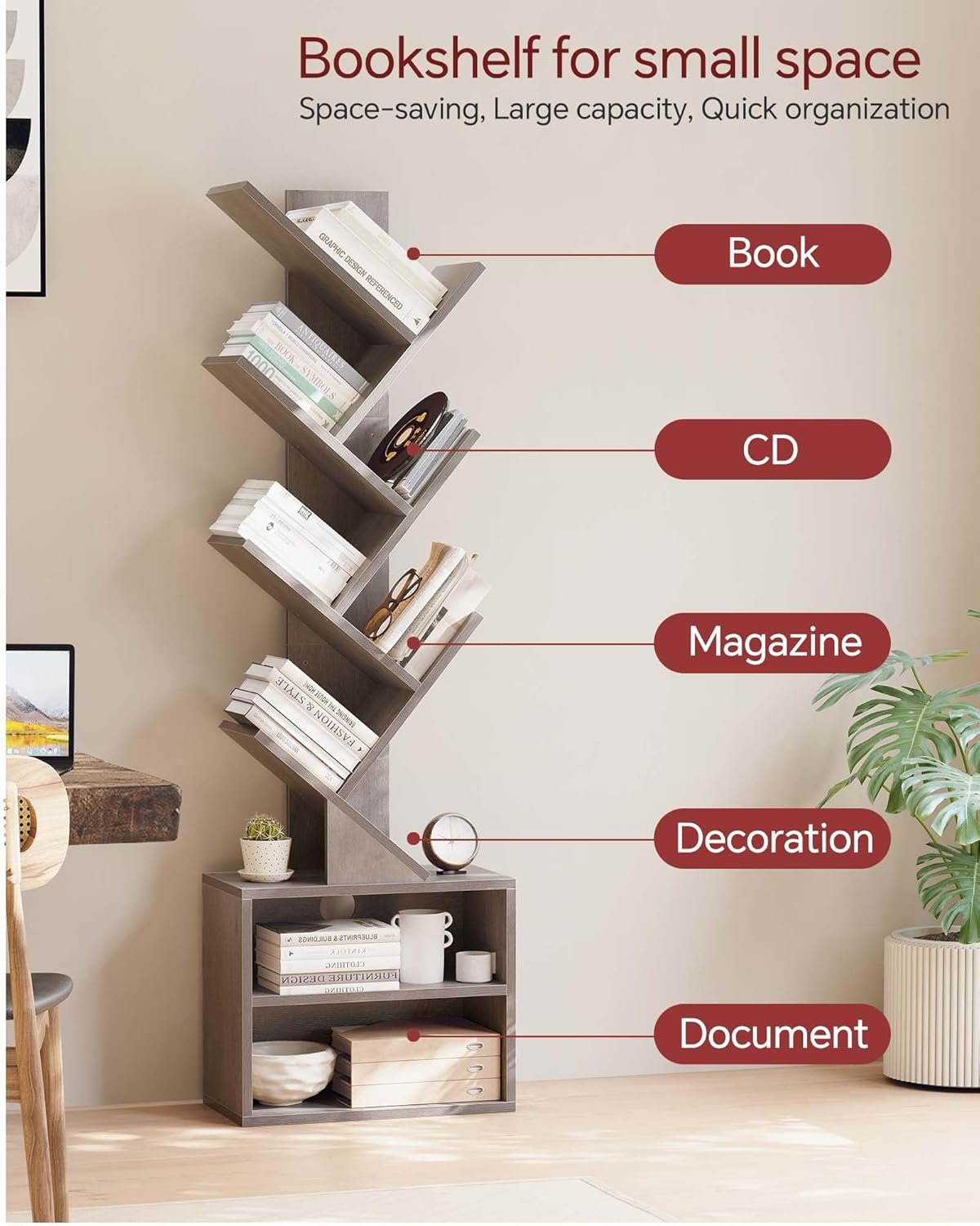 6 Tier Tree Bookshelf, Small Bookcase with Storage Cabinet, Modern Tall Narrow Bookshelves Organizer, Floor Standing Book Shelf for Bedroom/Living Room/Home Office/Corner, Rustic Brown