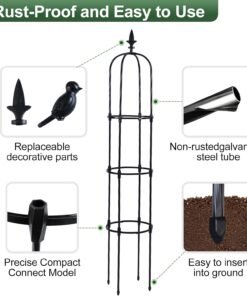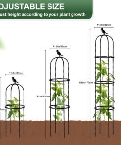 - Rust-Proof & Weather-Resistant Trellis — Poly-coated steel-core stakes + UV-resistant plastic rings, adjustable height