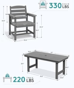 Be the first to review “Outdoor HDPE Dining Table Set, 7-Piece Outdoor Dining Table Sets with Umbrella Hole Cut-Out Table and 6 Chairs, Gray” Cancel reply